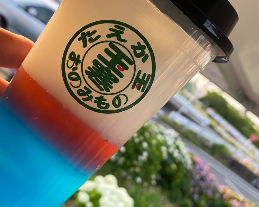 今だけ限定でブルーハワイで紫陽花をイメージした寒天にはちみつレモンを注ぎます。